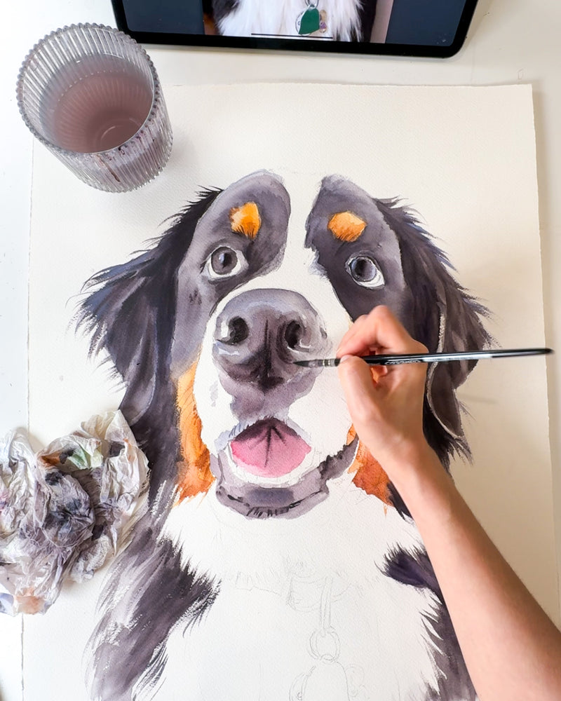 Hand-painted dog portrait in watercolor
