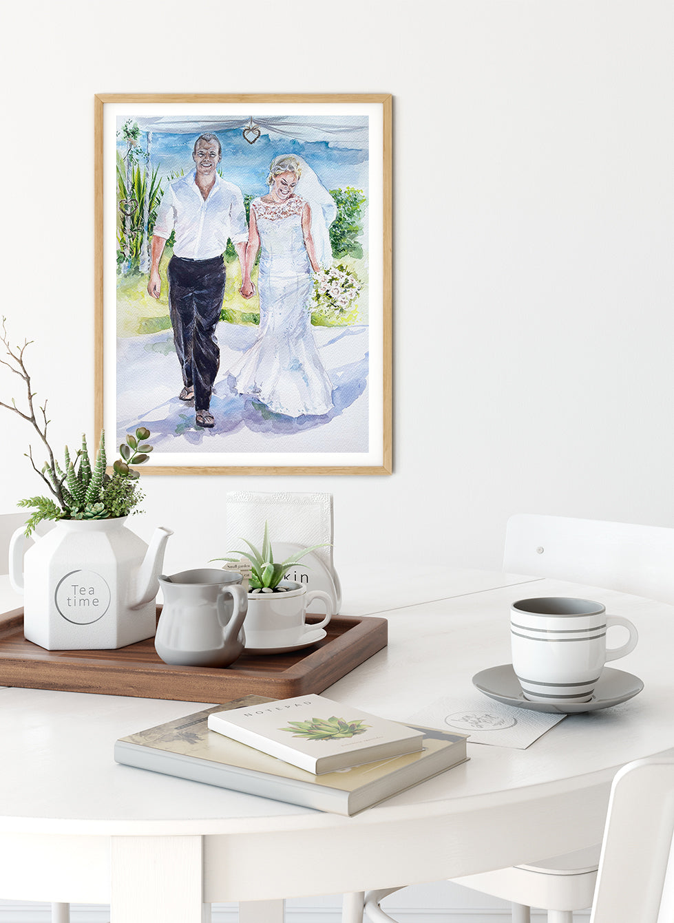 Hand-Painted Custom Wedding Portrait in Watercolor
