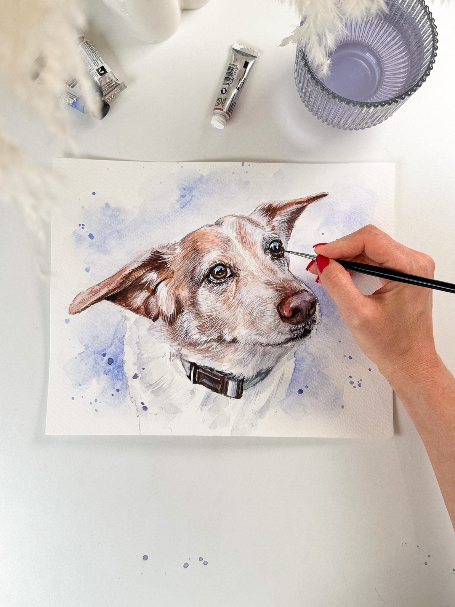 Hand-painted dog portrait in watercolor