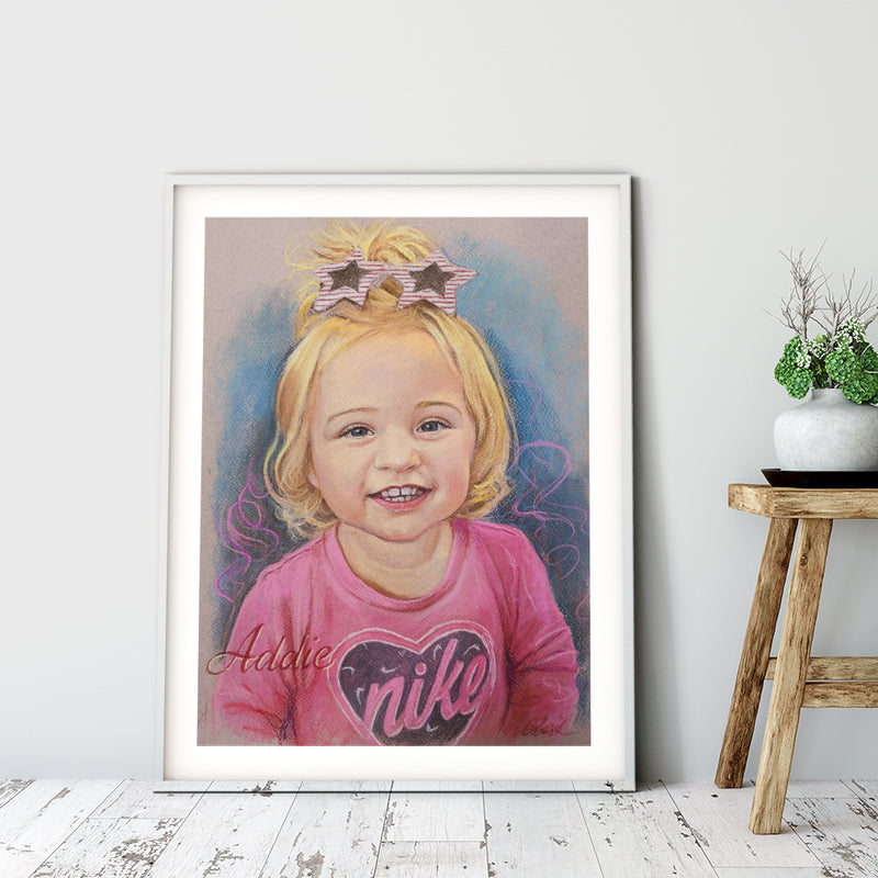 Every portrait is made to order, fully handcrafted by a professional artist, with your chosen size, style, and personal details.